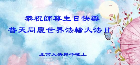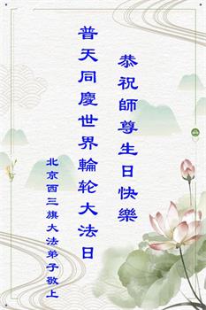 祝贺世界法轮大法日! 北京市大法弟子恭祝慈悲伟大的师尊生日快乐!
