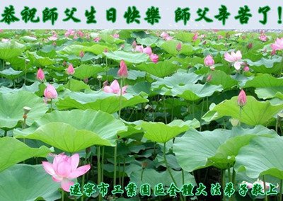 【明慧网二零二零年五月十二日】 四川省遂宁市工业园全体大法弟子恭祝慈悲伟大的师父生日快乐!