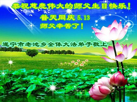 普天同庆法轮大法日! 师父好!师父辛苦了!全体大法弟子感恩师父慈悲苦度! 二零二零年四月二十五日 四川省遂宁市老池乡全体大法弟子恭祝慈悲伟大的师父生日快乐!