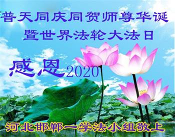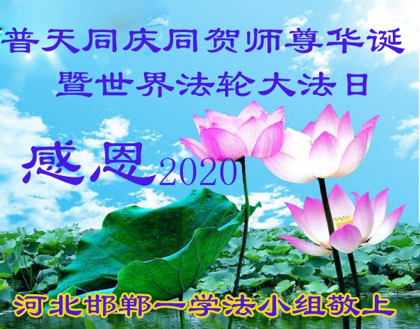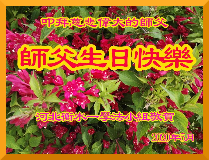 【明慧网二零二零年五月十二日】 河北邯郸一学法小组全体大法弟子恭祝慈悲伟大的师尊生日快乐!恭贺法轮大法日!