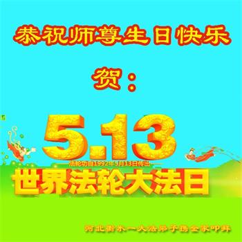 在今后的修炼路上,紧跟师父安排的正法進程,做好三件事。多讲真相,请师父放心。 河北省邯郸市曲周县大法弟子及家人祝师父生日快乐!