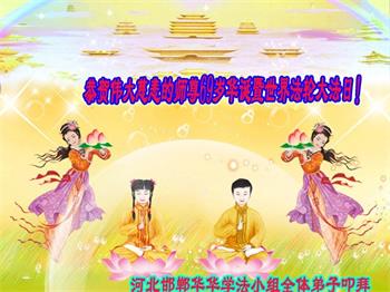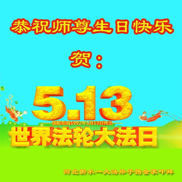 河北省衡水市一老年大法弟子携全家恭贺法轮大法日!