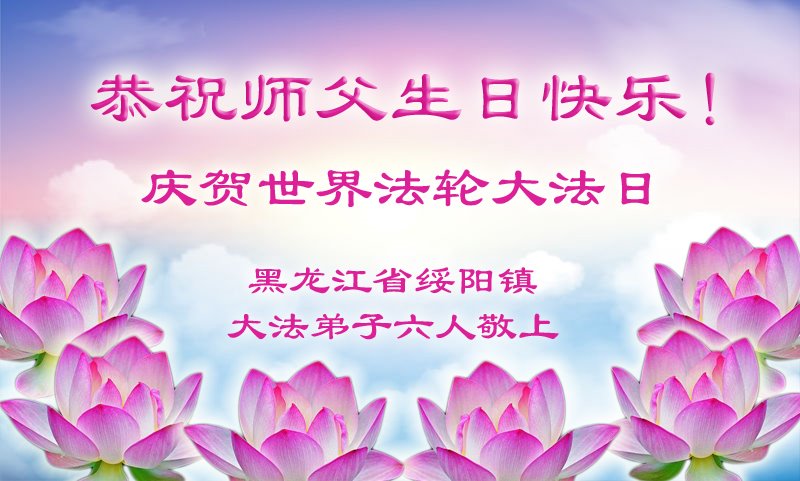 恭祝慈悲伟大的师尊生日快乐!恭贺法轮大法日! 黑龙江省鹤岗市大法弟子敬上 黑龙江省绥阳镇大法弟子恭祝师尊生日快乐!