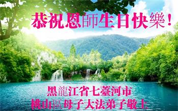 黑龙江省七薹河市茄子河区俩位大法弟子恭祝恩师生日快乐!