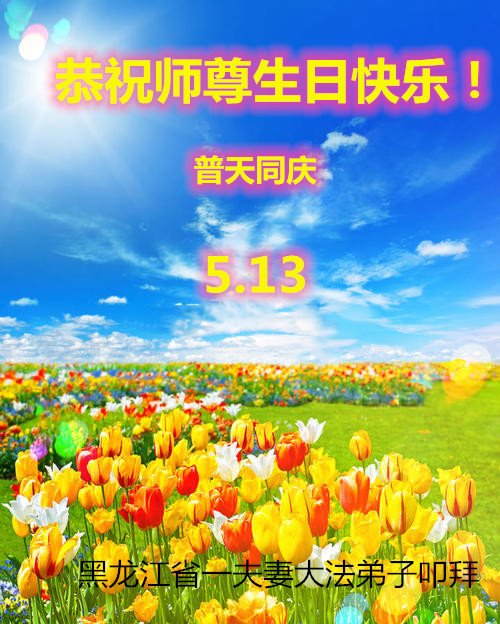 黑龙江省一夫妻大法弟子恭祝师父生日快乐!