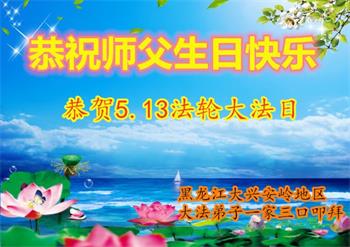 黑龙江省大兴安岭地区一家三口大法弟子恭祝师父生日快乐!