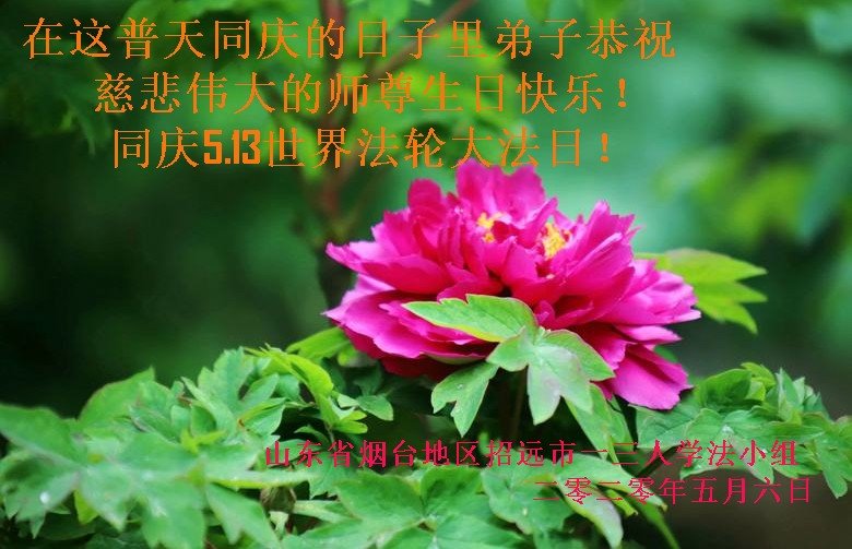 山东省烟台桃村大法弟子恭祝师尊生日快乐!庆祝5.13世界法轮大法日!