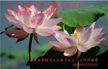 【明慧网二零二零年五月十二日】 山东邹城兖矿大法弟子恭祝师尊生日快乐!