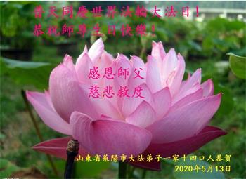 山东烟台莱州大法弟子一家贺世界法轮大法日!恭祝师尊生日快乐!