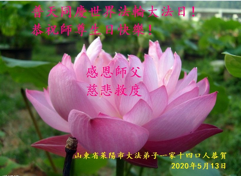 恭贺世界法轮大法日! 山东省烟台市莱阳市大法弟子一家十四口人恭祝慈悲伟大的师父生日快乐!