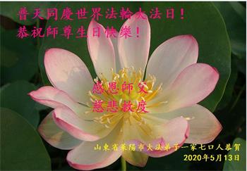 恭贺世界法轮大法日! 山东省烟台市莱阳市大法弟子一家七口人恭祝慈悲伟大的师尊生日快乐!
