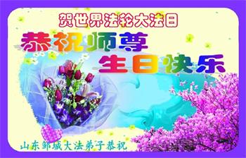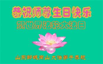 山东邹城岗山大法弟子恭祝师尊生日快乐!
