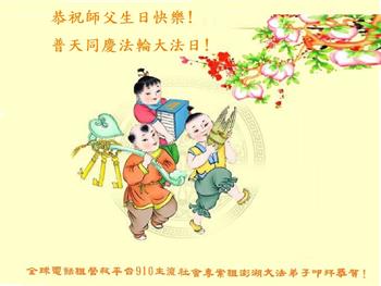 我们无限感恩师尊的慈悲救度!叩拜恩师!双手合十。 全体台湾大法弟子恭祝师尊生日快乐!