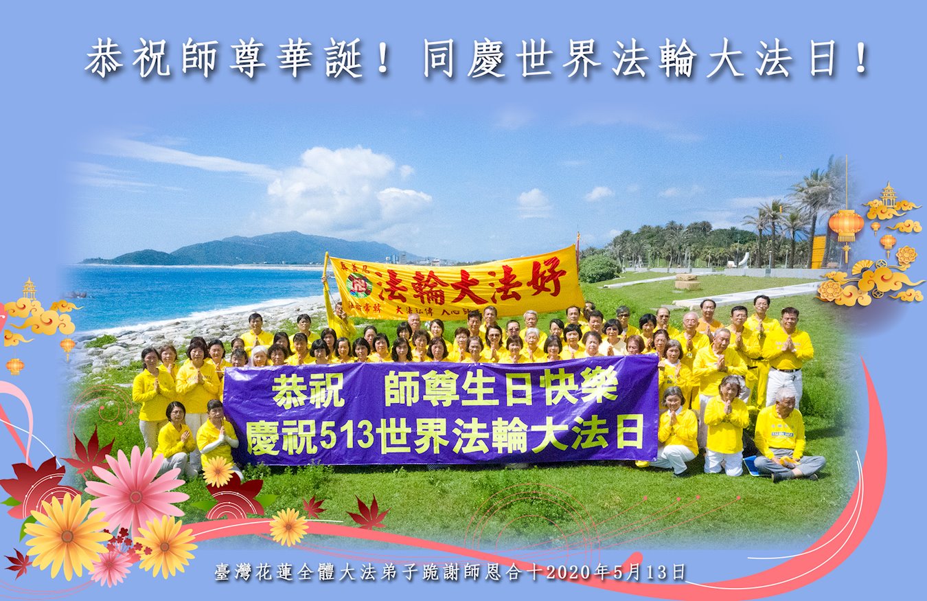 【明慧网二零二零年五月十三日】 台湾花莲学员恭祝师尊生日快乐!庆祝世界法轮大法日!