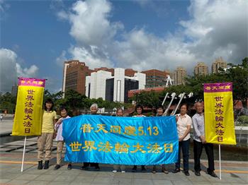 台湾金门大法弟子每周六上午皆会到金门著名景点莒光楼前炼功洪法。适逢世界法轮大法日届临之际,5月9日金门大法弟子们炼完功后集体合影,恭祝师尊生日快乐!感谢师尊慈悲苦度,并互相勉励更加精進以报师恩! 香港学员恭祝师父生日快乐!普天同庆世界法轮大法日!