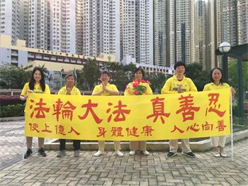 2020年5月13日,是法轮大法洪传世界二十八周年暨第二十一届世界法轮大法日,也是法轮大法创始人李先生的生日。在中共病毒疫情下,香港学员在“限聚令”下,以遍地开花的方式,庆祝法轮大法日。图为香港沙田炼功点学员一起恭祝法轮大法创始人李先生生日快乐! 香港一个学法点、炼功点和派发组的大法弟子恭祝师尊生日快乐!