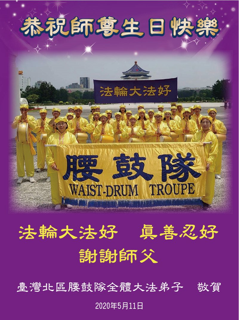 台北腰鼓队大法弟子恭祝师尊师日快乐!
