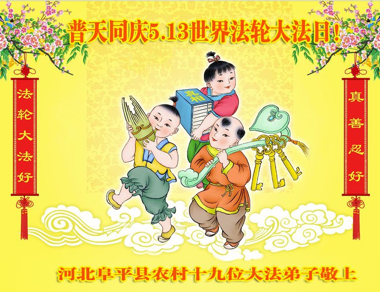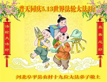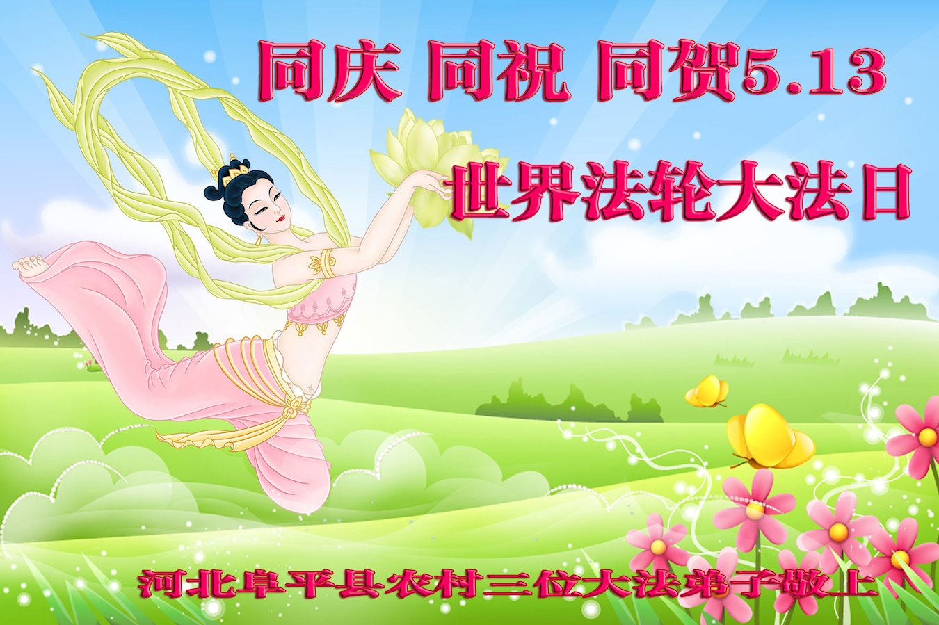 河北省保定市阜平县农村三位大法弟子同庆同祝同贺5.13世界法轮大法日