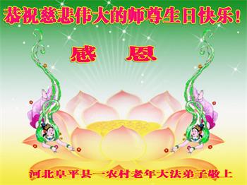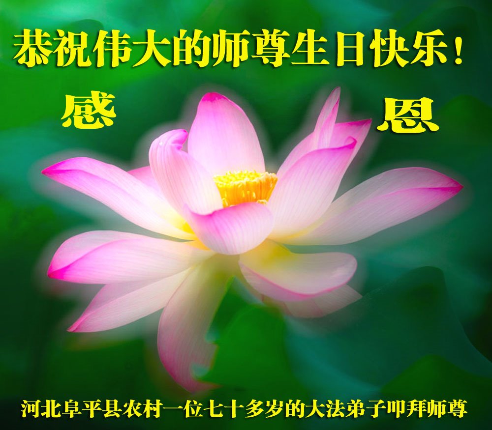 河北省保定市阜平县一农村老年大法弟子恭祝慈悲伟大的师尊生日快乐!