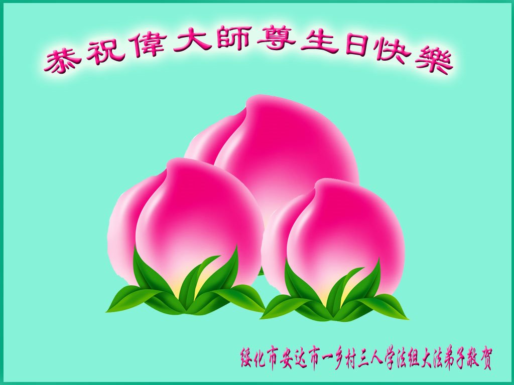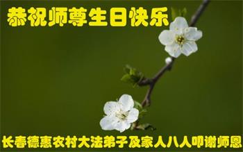 长春市德惠农村大法弟子及家人八人叩谢师恩。 黑龙江省绥化市安达市一乡村三人学法组大法弟子恭祝伟大师尊生日快乐!