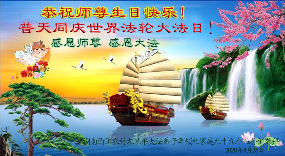 普天同庆世界法轮大法日! 湖南省衡阳农村九兄弟大法弟子率领九家庭九十九个儿孙们敬拜 2020年4月25日 江苏省徐州市丰县乡镇大法弟子恭贺世界法轮大法日!