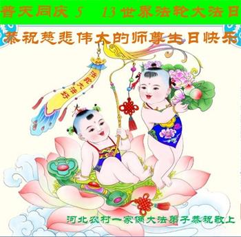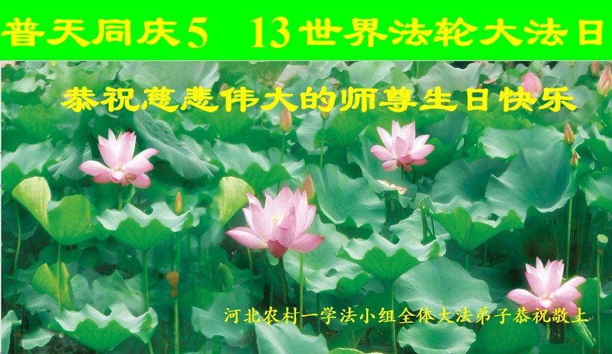 普天同庆5·13世界法轮大法日! 河北农村一家俩大法弟子恭祝敬上 河北农村一学法小组全体大法弟子恭祝慈悲伟大的师尊生日快乐!