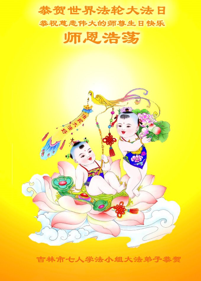 吉林市大法弟子恭祝慈悲伟大的师尊生日快乐!庆贺世界法轮大法日!