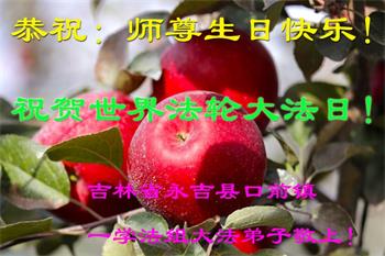 吉林省吉林市永吉县口前镇一学法组大法弟子恭祝师尊生日快乐!祝贺世界法轮大法日!