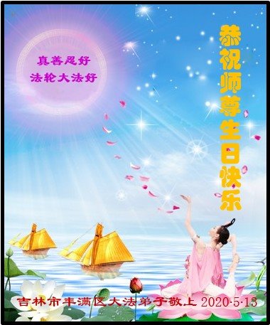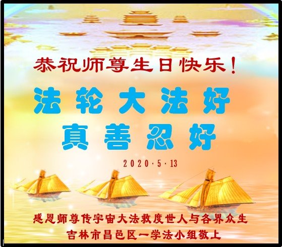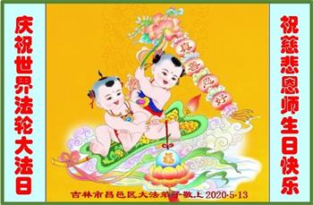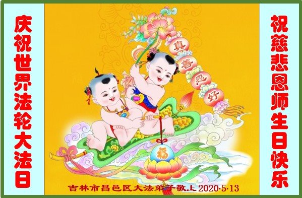 【明慧网二零二零年五月十三日】 吉林市七人学法小组大法弟子恭祝慈悲伟大的师尊生日快乐!恭贺世界法轮大法日!