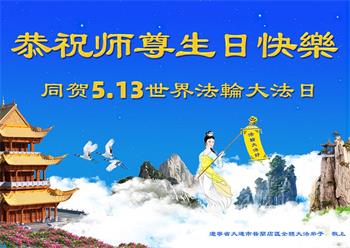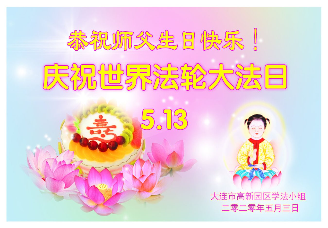 【明慧网二零二零年五月十三日】 辽宁省大连市普兰店市区全体大法弟子恭祝慈悲伟大的师尊生日快乐!同贺世界法轮大法日!