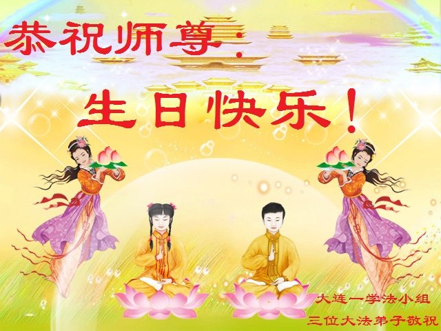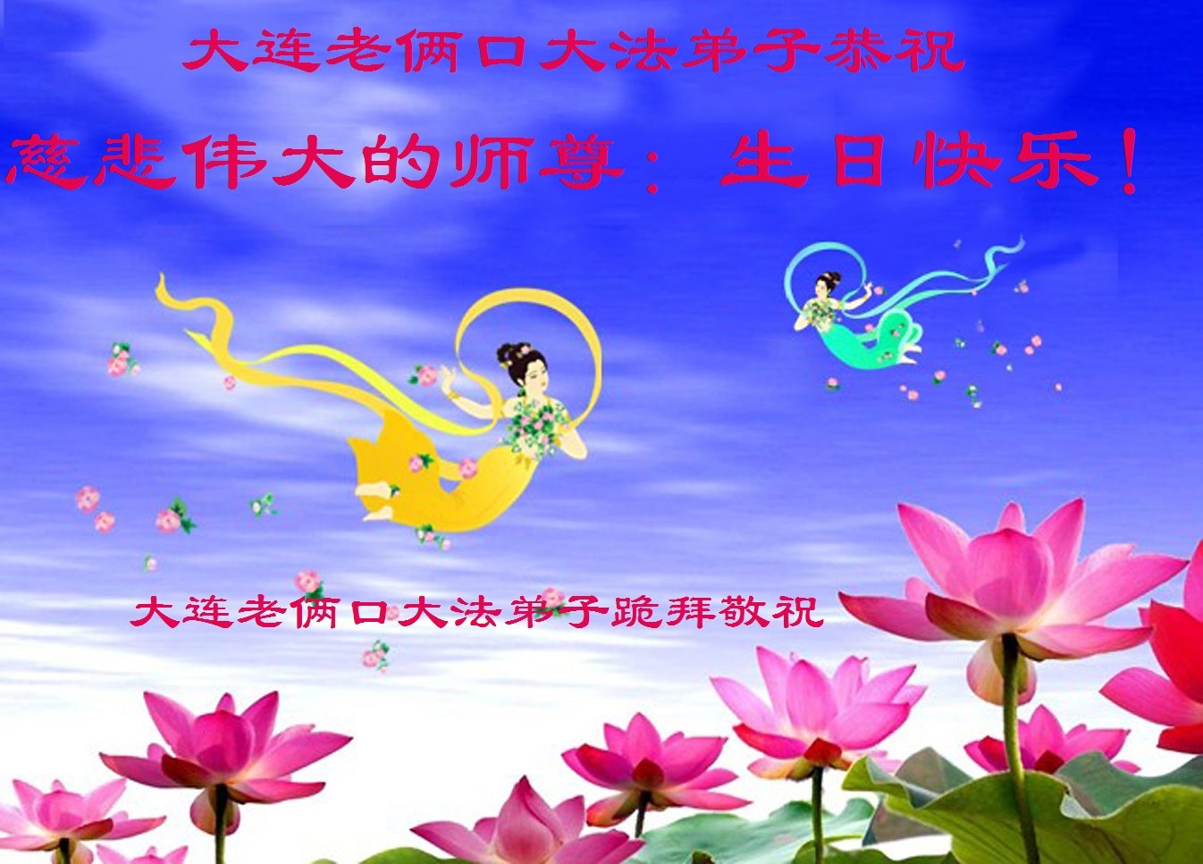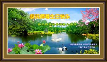 辽宁省大连大法弟子一恭祝伟大慈悲祥和师父生日快乐!