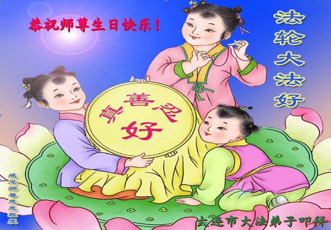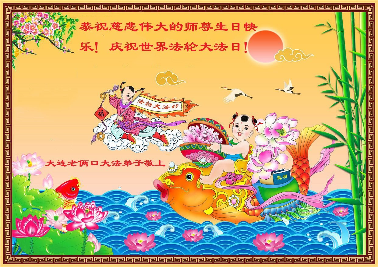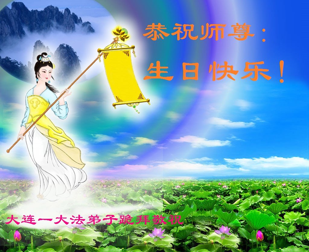 辽宁省大连市一大法弟子恭祝慈悲伟大的师尊生日快乐!庆贺世界法轮大法日!
