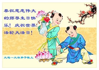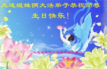 辽宁省大连市姐妹俩大法弟子恭祝慈悲伟大的师尊生日快乐!庆贺世界法轮大法日!