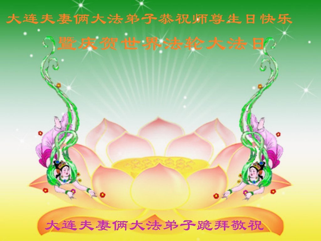 辽宁省大连市夫妻俩大法弟子恭祝慈悲伟大的师尊生日快乐!庆贺世界法轮大法日!