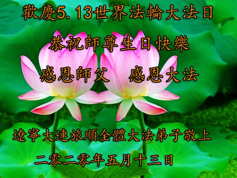 恭祝师尊生日快乐! 感恩师父感恩大法 辽宁大连旅顺全体大法弟子敬上 二零二零年五月十三日 辽宁大连旅顺一老年大法弟子欢庆5.13世界法轮大法日!