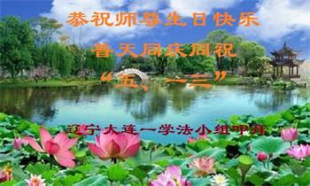 辽宁大连一学法小组大法弟子恭祝师尊生日快乐!普天同庆同祝“五·一三”世界法轮大法日!