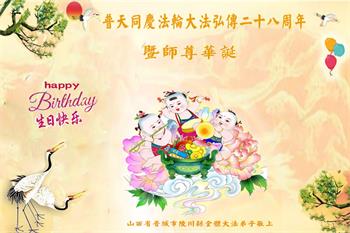 山西省阳泉市大法弟子恭祝慈悲伟大的师尊生日快乐!