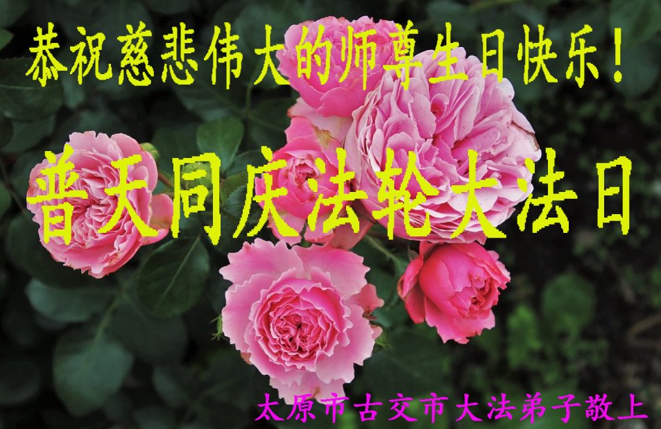 普天同庆同贺:五一三世界法轮大法日二十一周年!法轮大法洪传二十八周年! 山西省太原市古交大法弟子恭祝慈悲伟大的师尊生日快乐!普天同庆世界法轮大法日!