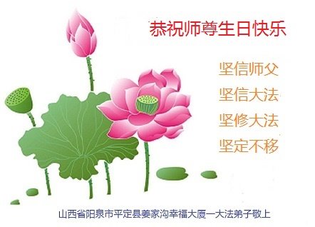 山西省阳泉市平定县一大法弟子恭祝慈悲伟大的师尊生日快乐!普天同庆世界法轮大法日!