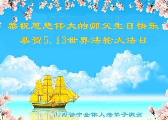 五·一三是世界法轮大法日,是普天同庆的伟大节日!在此盛大节日来临之际,我们晋城一项目小组大法弟子恭祝慈悲伟大的师尊生日快乐!感恩师尊慈悲救度! 弟子合十叩拜! 山西省晋城市一项目小组大法弟子合十叩拜! 山西省晋城市陵川县全体大法弟子恭祝慈悲伟大的师尊华诞!庆祝5.13世界法轮大法日!