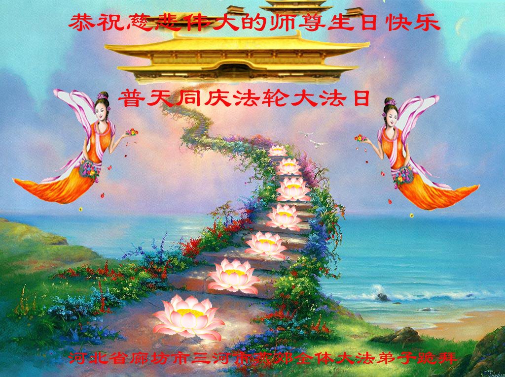河北廊坊市大法弟子庆祝法轮大法日!恭祝师尊生日快乐!