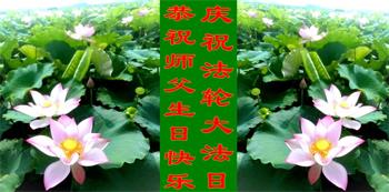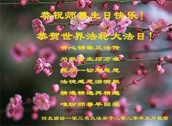 恭祝慈悲伟大的师父生日快乐! ! 河北廊坊市一家三位大法弟子:恭祝师父生日快乐!