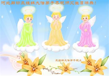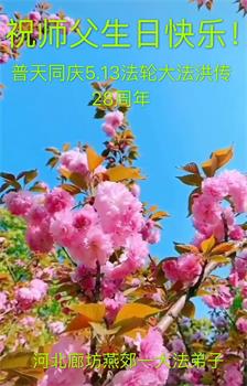 我们三姐妹感恩师父的慈悲救度,决心坚修到底,完成使命,圆满随师还。 河北廊坊大法弟子恭祝师尊生日快乐!恭贺法轮大法日!