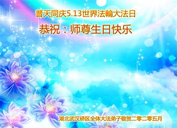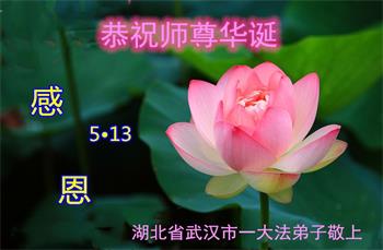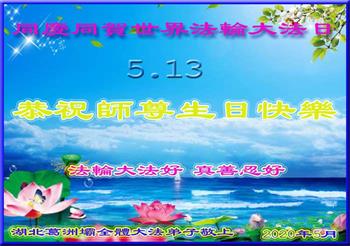 湖北省大法弟子恭贺“五·一三”世界法轮大法日!恭祝慈悲伟大的师尊生日快乐!