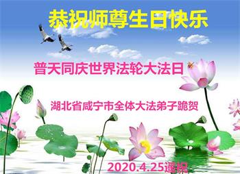 恭贺世界法轮大法日! 湖北咸宁大法弟子恭贺伟大的师尊华诞!