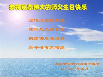 普天同庆5.13世界法轮大法日! 湖北省孝感市大悟县大法弟子恭祝师父生日快乐!