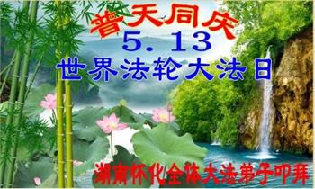 【明慧网二零二零年五月十三日】 湖南省怀化市全体大法弟子恭贺5.13世界法轮大法日!
