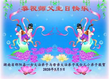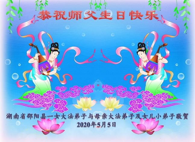 湖南省邵阳县一大法弟子及母亲、女儿两位大法弟子恭祝师父生日快乐!