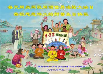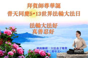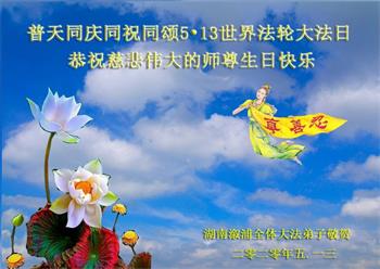 湖南大法弟子恭祝师父生日快乐!普天同庆世界法轮大法日!