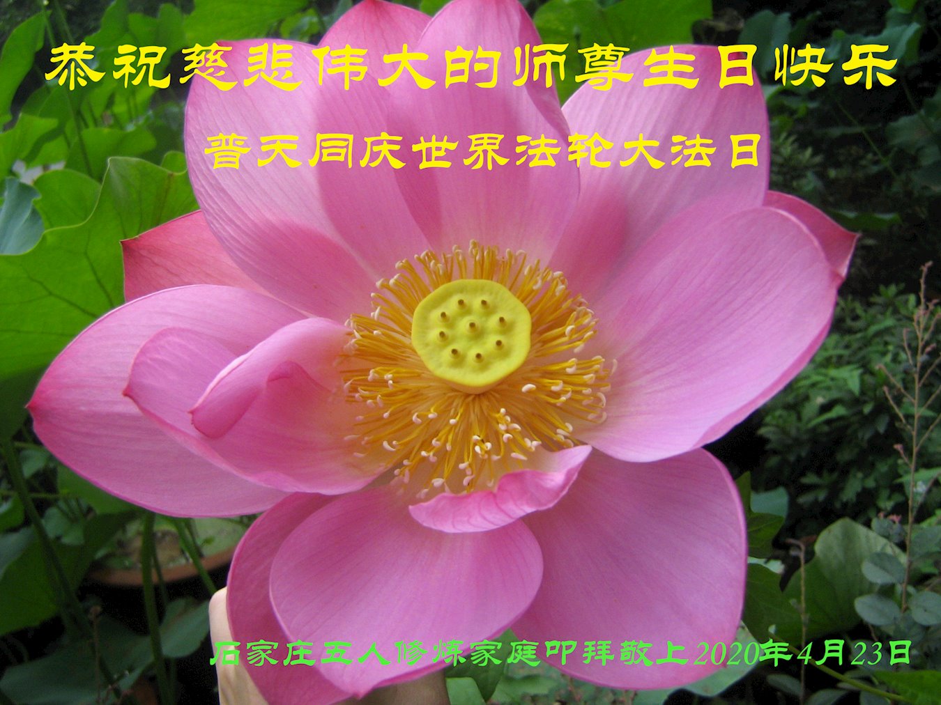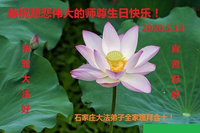 佛光普照!普天同庆! 恭祝慈悲伟大的师父生日快乐!师父辛苦了! 庆贺五·一三世界法轮大法日!法轮大法好!真、善、忍好! 河北省石家庄市裕华区一大法弟子携家人敬上 二零二零年五月一日 河北省石家庄市裕华区一学法组大法弟子恭祝师尊生日快乐!